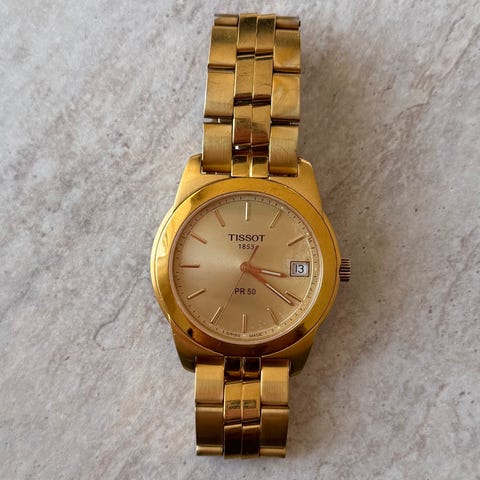 Stilrent og tidløst Tissot PR 50 Automatic fra omkring år 2000. Uret har 36 mm urkasse i rustfrit stål, sort skive og dato ved kl. 3 – et elegant og alsidigt design, der passer til enhver anledning.