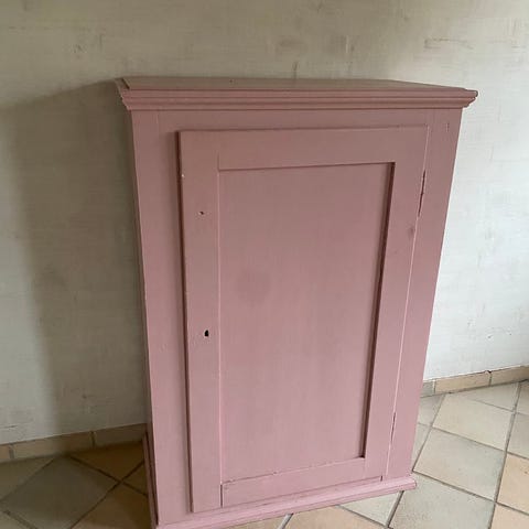 Vi sælger dette fine gamle karlekammerskab, som vi har brugt på vores søns værelse til hans tøj – og det har fungeret super godt som garderobeskab.