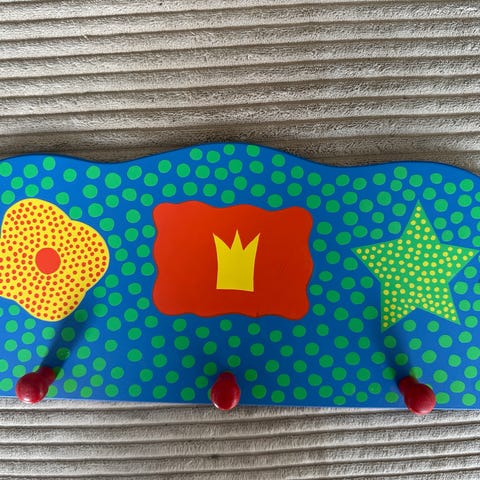 Charmerende gammel knagerække. Brug den i entréen. Til håndklæder på badeværelset eller i køkkenet. 75 cm i længden. 100 kr. er i Fredericia
