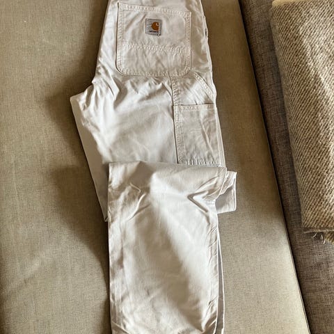Carhartt bukser til kvinder i størrelse M. Bukserne er fremstillet i bomuld og har et multifarvet camouflage-mønster. Klassisk buksemodel med bæltestropper og lommer.