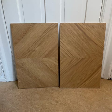 Ikea skabslåger 4 stk 500 kr., Jeg vil mene, det er Fardal, med meget få næsten usynlige brugsspor. 10 beslag med diverse skruer medfølger.