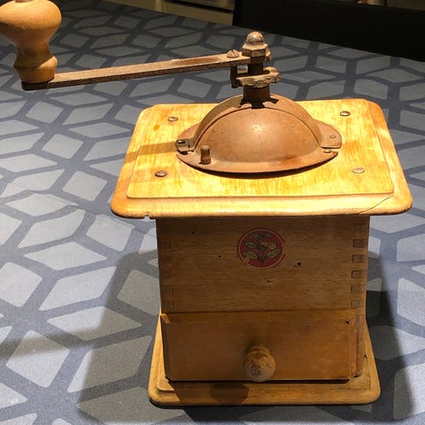 Manuel kaffemølle i klassisk design. Møllen er udført i træ med metaloverdel og drejehåndtag med træknop. Den har en lille udtræksskuffe nederst til opsamling af den malede kaffe. Velegnet til maling af kaffebønner i mindre mængder og som køkkenredskab eller dekoration.