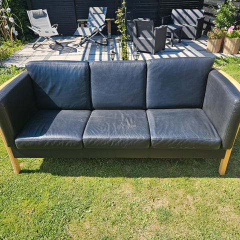 To styk to personers sort lædersofa