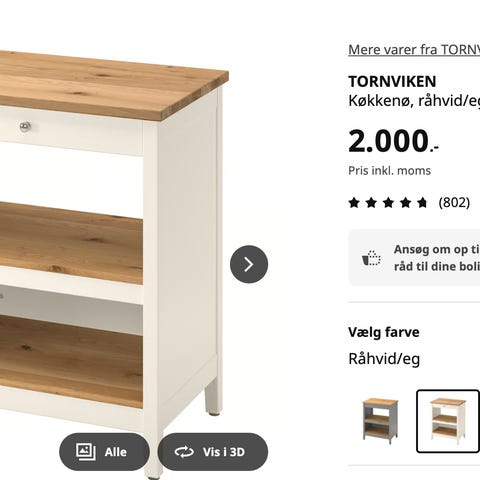 IKEA Tornviken køkkenø - Nem at placere – med masser af plads til f.eks. en mikroovn, så du kan udnytte pladsen optimalt. Bagsiden er tilpasset til ledningen, og den solide skuffe åbner og lukker blødt.