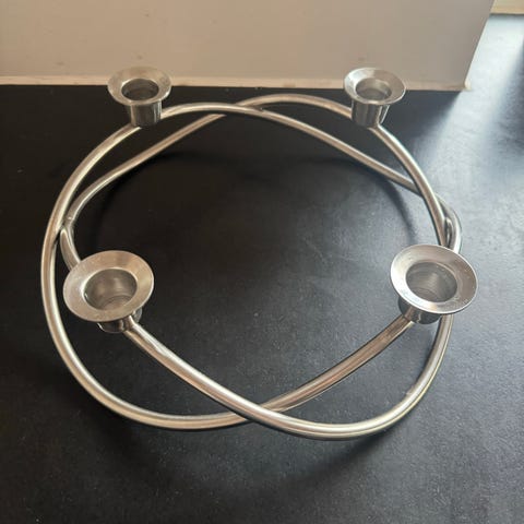 Georg Jensen lysestage i sølvfarvet metal. Stagen har et organisk, dråbeformet design med en rund holder til et mindre lys, f.eks. fyrfadslys eller lille stagelys. Velegnet som borddekoration eller til brug på hylde, vindueskarm eller lignende i hjemmet.
