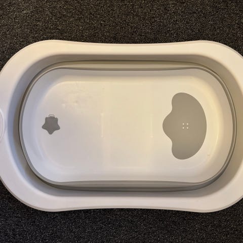 Indersiden har formet liggeflade og skridsikre felter. Egnet til bad af spædbørn og småbørn i hjemmet eller på rejser, hvor der er behov for et kompakt badekar.