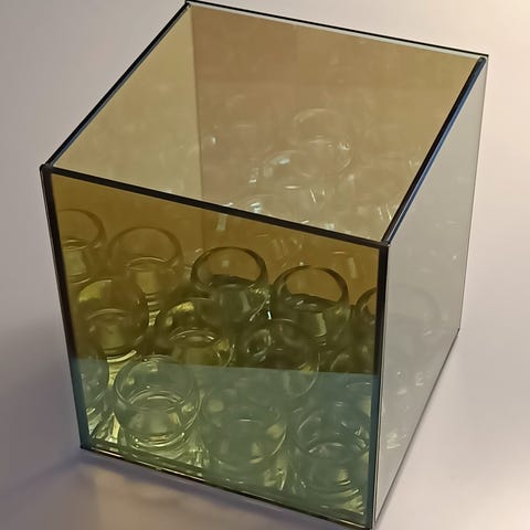Meget dekorativ, da der dannes spejlinger i glas-stagens overflader