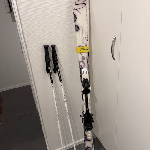 Salomon ski i længde 131 cm. Ski i hvid farve med orange detaljer. Inkluderer monterede bindinger, som kan justeres efter støvlestørrelse efter behov. Velegnet til alpint skiløb.