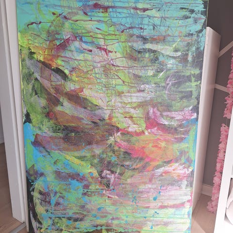 Acrylmaling , Ukendt , motiv: Lotusblomst, Smukt abstrakt maleri med lotusblomst som motiv og inspirationen bag.