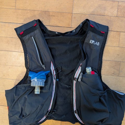 Salomon Active Skin løbevest i unisex str. L i sort. Løbevesten er lavet i let og åndbart mesh-materiale med flere lommer foran og bagpå til opbevaring under løb. Justerbare snører foran sikrer tilpasning til kroppen. Velegnet til løb og trail med mulighed for at medbringe mindre udstyr, væske og personlige ejendele. Rygsækken har 4 liter volumen.