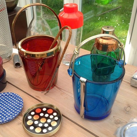Antik isspand med tang (str. Ø 10,5 cm længde 16 cm)