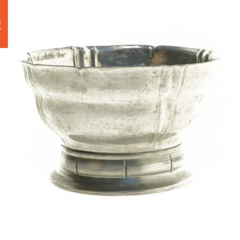 En dekorativ skål lavet af et metallisk materiale i sølvfarve. Skålens overflade er udsmykket med dekorative udskæringer på kanten og står på tre små kugleformede fødder. Bunden af skålen er mærket med en dato '29-8-1973'. Skålens størrelse er 14x2 cm.
