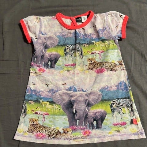 Flot lysegrå t shirt kjole fra Molo sælges i str 110/116 med fine glimmer detaljer ..