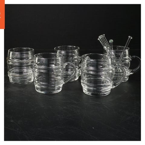 Sæt med fem lysegrønne krus i keramisk materiale. Krusene har en jævn overflade og hver især en stor hank for nem håndtering. Hvert krus har en diameter på 8,5 cm og en højde på 11 cm, hvilket gør dem velegnede til varme drikke. Den lysegrønne farve giver et friskt og moderne indtryk.