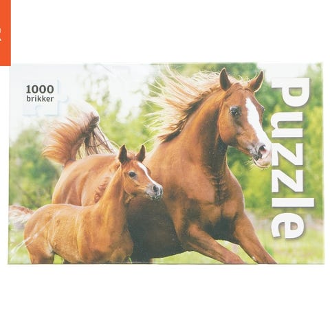 Dette er et 3D puslespil med et motiv af heste og deres føl, der måler 61x46 cm, og kommer med 500 brikker. Puslespillet er designet af Howard Robinson og er fremstillet af Inovakids GmbH. Bagsiden af kassen viser flere andre designs, som er tilgængelige fra samme serie. Æsken indeholder brikkerne, som kan samles til det skønt detaljerede hestemotiv.