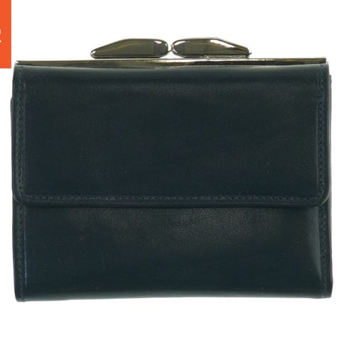 Denne pung er lavet af sort læder og har en klassisk foldbar stil med flere rum til opbevaring af kontanter og kort. Den har en holdbar metallås for at sikre indholdet. Pungen måler 11x10 cm og er ideel til daglig brug.