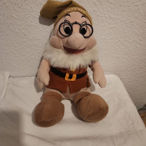 Dette er et tøjdyr, der forestiller Minnie Mouse. Det er fremstillet i blødt materiale og har en størrelse på 68x30 cm. Minnie Mouse bærer en lyserød kjole med hvide prikker og en matchende lyserød sløjfe på hovedet. Dens hænder er hvide, og dens fødder er også lyserøde med lille sløjfer. Legetøjet ser ud til at være velholdt og egnet for børn eller som en samlerobjekt.