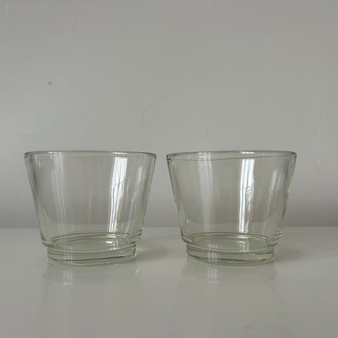 To små lysestager i sort farve. Hvert glas har en diameter på 7 cm og en højde på 6 cm, ideelle til at dyrke løgplanter som hyacinter. Glassenes indre er lavet til at støtte løg til dekoration eller indretning hjemme.