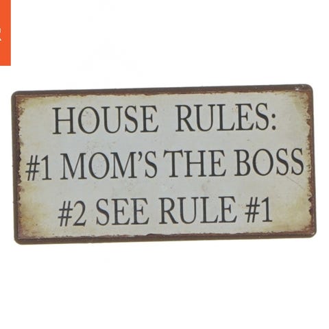 En dekorativ metalplade med teksten 'Gør altid som mor siger, gør kun som far siger hvis mor ikke er der'. Den har en vintage finish og er ideel til vægdekoration. Metalpladen kommer med muligheder for ophængning på bagsiden. Produktet har dimensioner på 30,5x13 cm. Der er et mærkat på bagsiden med logoet 'Lafinesse.eu' samt en stregkode og modelnummer.