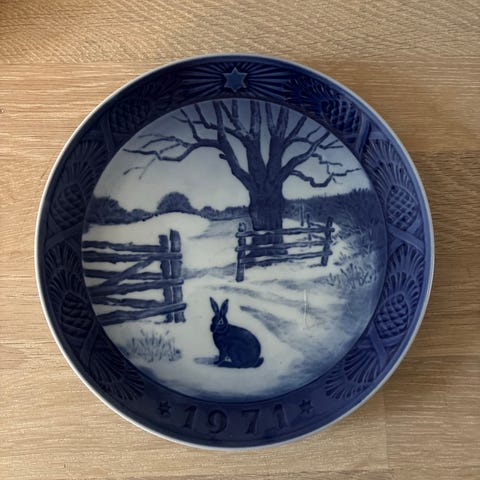 Royal Copenhagen juleplatte 1928 porcelæn blå-hvid