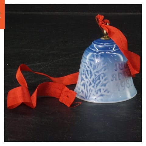 Porcelænsklokke med rød snor fra B&G (str. 8x7 cm)