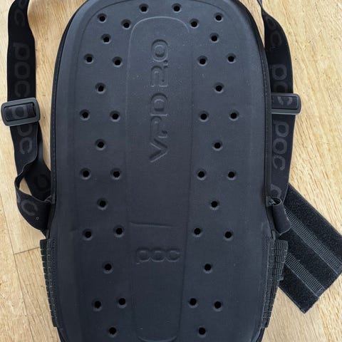 POC VPD rygskjold i unisex størrelse XS. Ærmeløs vest med gennemgående lynlås foran. Hovedfarven er hvid med orange detaljer og stort POC-logo på fronten. Bagsiden har integreret VPD-rygbeskyttelse og sort, ribbet nederste del. Vesten er lavet i let og åndbart mesh-materiale, der er egnet til brug over en trøje ved cykling, ski, snowboard eller anden kørsel, hvor der ønskes rygbeskyttelse.
