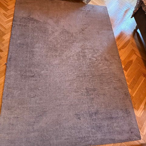 Vitra tæppe i rektangulær form med felter i forskellige grå nuancer fra lys til mørk. Tæppet har en blød, tæt luv og egner sig til brug i stue eller opholdsrum. Neutrale farver gør det let at kombinere med forskellige møbler og indretninger. Købt i garant tæppe. Mål 200x300 Købt for 6599 kr.