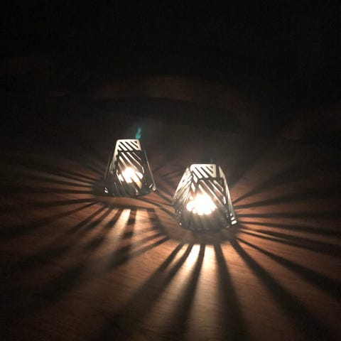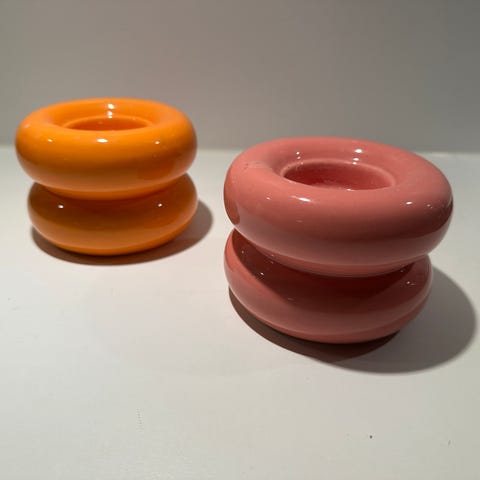 To fine, helt intakte, lysestager til fyrfadslys fra Rigmor Als i fin tynd porcelæn, så lyset skinner igennem.