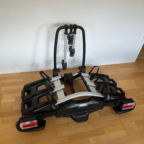 Thule VeloCompact cykelholder til anhængertræk. Cykelholderen monteres på bilens anhængertræk og er beregnet til transport af flere cykler. Konstruktionen består af en metalramme med holdere til cyklernes hjul og stel. Velegnet til brug ved ferier, pendling eller anden transport af cykler på bil. Yderligere specifikationer som præcis kapacitet og vægt fremgår af typeskiltet på produktet.