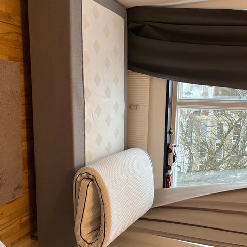 Sengen er 169 bred og ikke 180 som jeg linker til, og den er grøn velour.