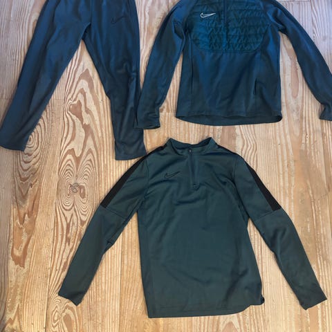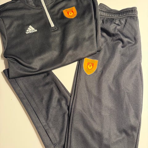 Adidas fodboldtræningssæt bestående af forskelligt fodboldtøj og -udstyr i børnestørrelse 152-164. Sættet omfatter blandt andet træningsjakker, træningsbukser og trøjer i flere farver, primært i syntetisk materiale egnet til sport. Der medfølger desuden fodboldrelateret udstyr som handsker og benskinner og fodboldstøvler. Velegnet til fodboldtræning for børn i størrelse 152-164. Samlet pris 1500,-kr