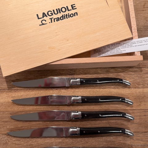 Sæt med to knive og et sæt med kniv og gaffel.