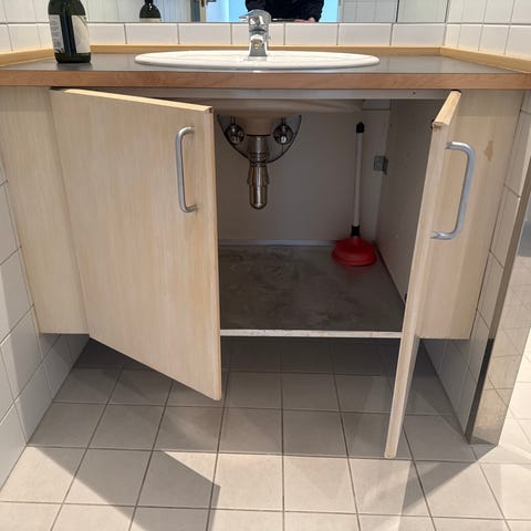 IKEA Nysjön badeværelsesskab. Overdel er defekt (knækket), men alt andet nyt-ubrugt. Mangler du en låge eller andre dele til et lign skab, så kan det afhentes gratis - hurtigst muligt - i Hillerød.