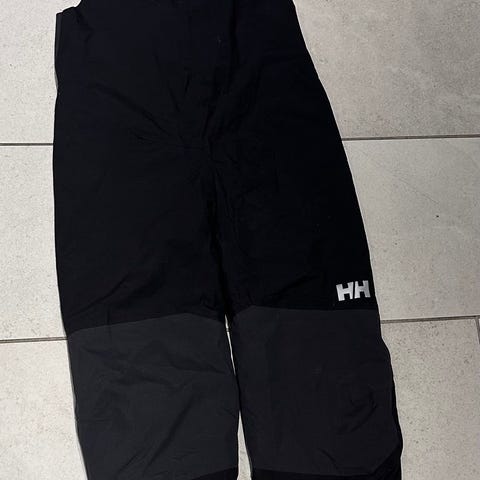 Helly Hansen børnebukser i str. 128 til unisex. Bukserne er sorte og fremstillet i polyester. De har justerbare seler og elastik i taljen for bedre pasform. Benafslutningerne har indvendig ribkant/elastik, som hjælper med at holde sne og kulde ude. Velegnet som overtøjsbukser til udendørs leg og brug i koldt vejr og på skiferie. Brugt, men har mange gode stunder i sig endnu.