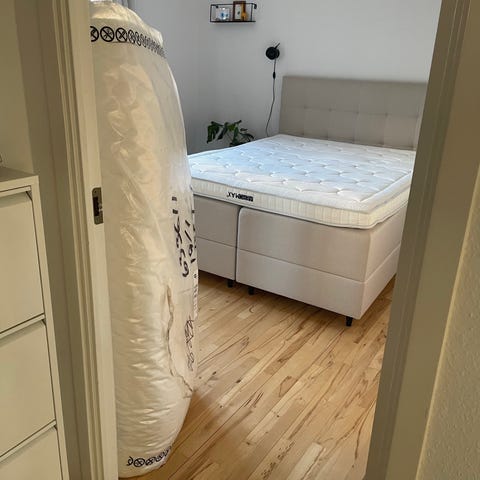 Sælger denne virkelig gode topmadras. Kun få uger gammel, købt slut januar 2026. Fra sengebutikken Drømmeland i Herning. Har kun været ligget på i nogle timer ikke engang en hel nat. Normalpris 9000kr når den ikke er sat ned. Den er i den høje ende af kvalitetsskalaen, det er ikke ultra primo som fx Hästens men den er i den øvre ende. På en skala fra 1-10 kvalitetsmæssigt ligger den omkring 7-8. Den ligger lige nu fladt ned så tyngdekraften påvirker ikke formen som hvis den stod på siden gennem længere tid. Meget bedre kvalitet end fx jysk så det er et godt tilbud og en virkelig god pris hvis man vil købe noget som er brugt men næsten ikke brugt og man vil spare rigtig mange penge. I er velkomne til at komme og se og mærke kvaliteten. Kvittering haves ☺️