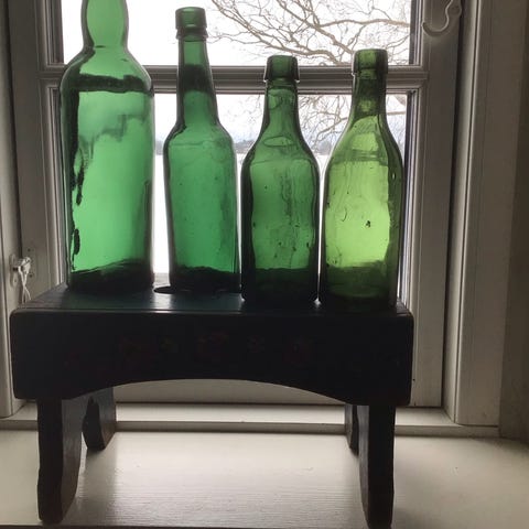 Gamle grønne ølflasker sæt med 3 flasker