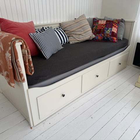 Den er købt den i IKEA for fem år siden og fungerer stadig nemt og upåklageligt som både sofa og sovesofa/seng til 1 eller 2 personer.