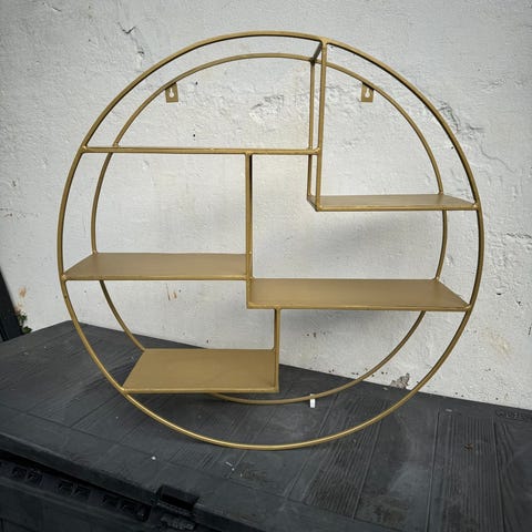 Hyldens generøse dybde giver dig også mulighed for at placere dekorative elementer eller praktisk opbevaring på toppen. Den varme messingtone tilfører rummet et elegant og industrielt præg.
