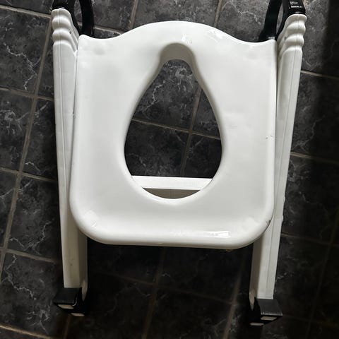 Se mine andre annoncer OBS Barnets Favorit 3i1 baby toilettræner i hvid og sort plast. Sættet består af toiletsæde med håndtag, trin/fodskammel og monteringsdele. Toilettræneren er beregnet til børn fra ca. 12 måneder og kan tilpasses almindelige toiletter. De enkelte dele samles efter den medfølgende vejledning og kan tages af og på efter behov.