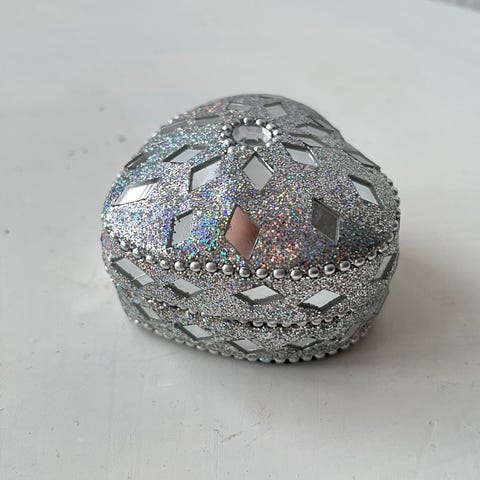 Lille fin æske fra 1990. God men brugt / lidt afbleget af solen, da den har stået i et vindue. Gået lidt i stoffet. B7cm. H3.5cm.