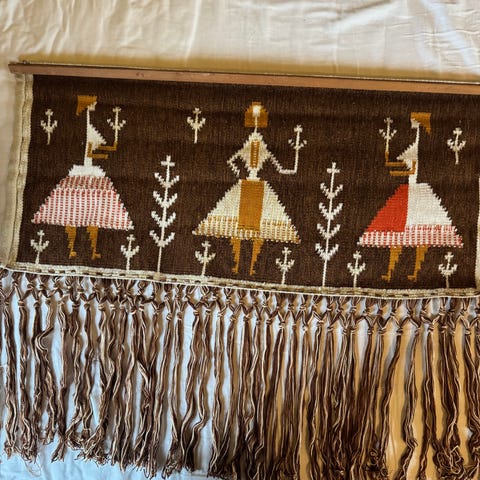 Mål: L = 135cm H (inkl. frynser). = 95cm
