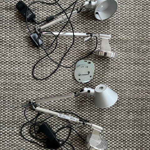 Artemide væglampe i gul metal designet af Achille Castiglioni. Lampen har justerbar arm og skærm, så lysretningen kan tilpasses efter behov. Monteres på væg med medfølgende vægbeslag og tilsluttes med ledning med afbryder. Velegnet som læselampe eller arbejdslys ved skrivebord, seng eller arbejdsplads.