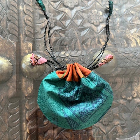 Silke Posen med etnisk mønster Made in Nepal. 100% Silke.
