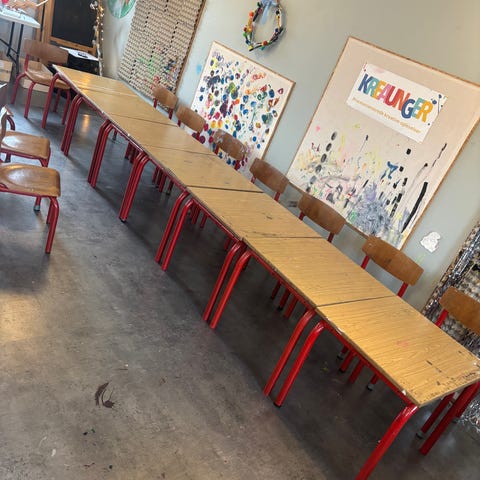Spillebord i træ med kvadratisk grøn bordplade. Bordet har en enkel, klassisk konstruktion med fire ben og en plan overflade, der egner sig til kortspil, brætspil eller andre aktiviteter ved bordet. Træstolenes udformning på billederne indikerer, at bordet passer til almindelig siddehøjde. Velegnet til brug i stue, hobbyrum eller lignende indendørs miljøer. Sælges med de 3 stole. Samlet lot