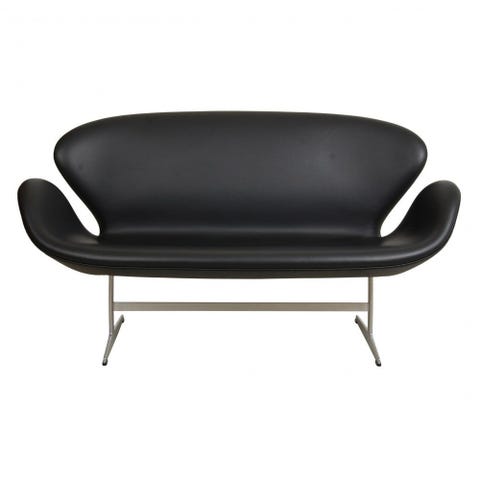 Fritz Hansen Arne Jacobsen sofa 3-personers sort læder stålstel