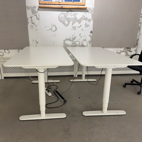 IKEA hæve-sænkebord i sort. Bordet har rektangulær bordplade og elektrisk stel med to ben, der gør det muligt at justere højden. Egnet som skrivebord eller arbejdsbord i hjemmekontor eller kontormiljø. Sort bordplade og sort metalstel giver et ensartet udtryk. Elektrisk betjeningsenhed er monteret under bordpladen, og ledninger føres langs stellet. Kan leveres mod betaling.