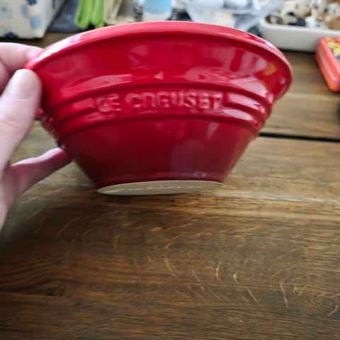 Le Creuset stor skål med hanke rød stentøj
