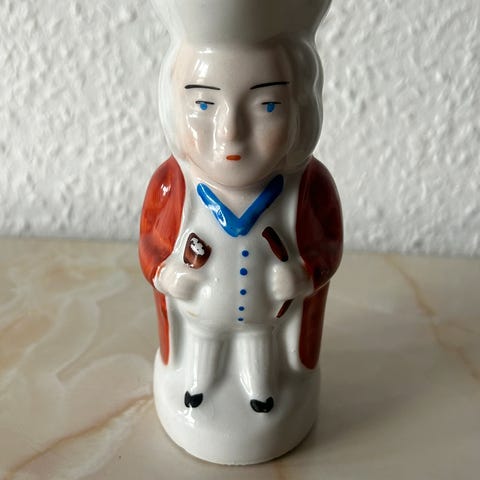 Engelske Toby kander i porcelæn. Sættet består af to figurformede kander udført som historiske personer med trekantede hatte. Kanderne er dekoreret i flere farver med detaljeret bemaling. Velegnet som samlerobjekter eller som dekorative elementer i indretningen.