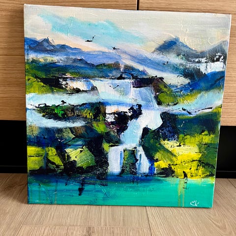 Flot maleri af kunstneren Christina Kjeldsmark. Bred lærred, som gør billedet flot uden ramme. Prisen er fast.