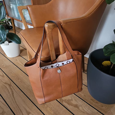 Helt mørkebrun,foto snyder og med guldfitting